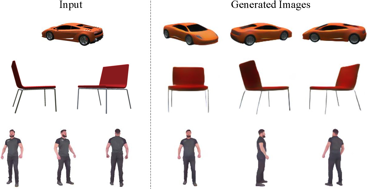 | We aim to address the challenge of novel view rendering of human performers that wear clothes with complex texture patterns using a sparse set of camera views. Our method can render high-quality images at 2k resolution on novel views, and it is a general framework that is able to generalize to novel subjects. |