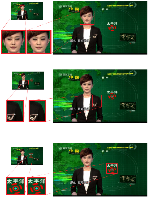 Fig. 5. Super-resolution results of Surveillance sequence by magnifying 3 times.