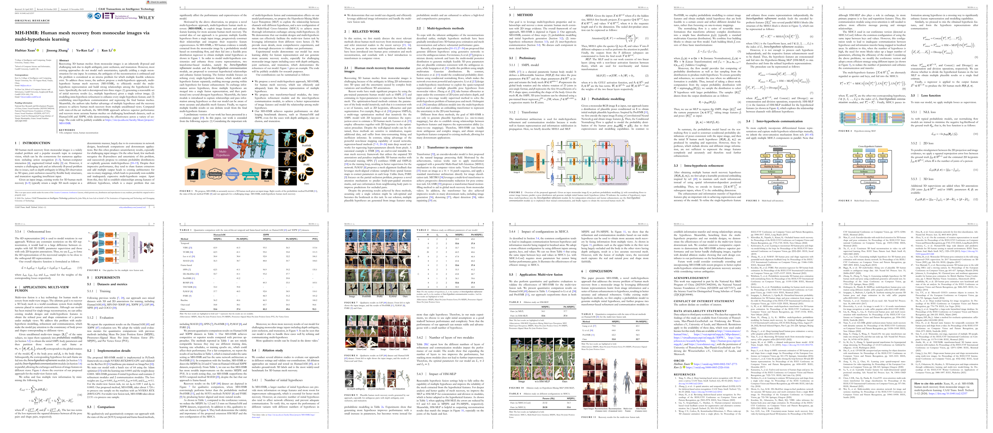 Haibiao Xuan, Jinsong Zhang, Yu-Kun Lai, Kun Li. MH-HMR: Human Mesh Recovery from Monocular Images via Multi-Hypothesis Learning. Proceedings of the CAAI Transactions on Intelligence Technology (CAAI TRIT). 2023.
