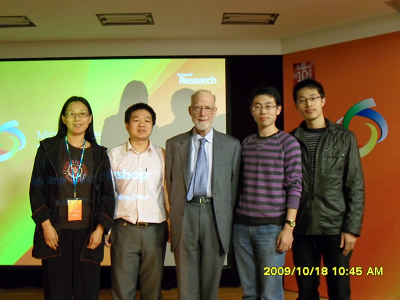 应邀参加了2009年10月17日在北京举行的由图领奖得主Tony Hoare先生领衔,微软亚洲研究院、中国科学院软件研究所、华东师范大学和北京航空航天大学联合主办的2009微软亚洲研究院可验证软件研讨会