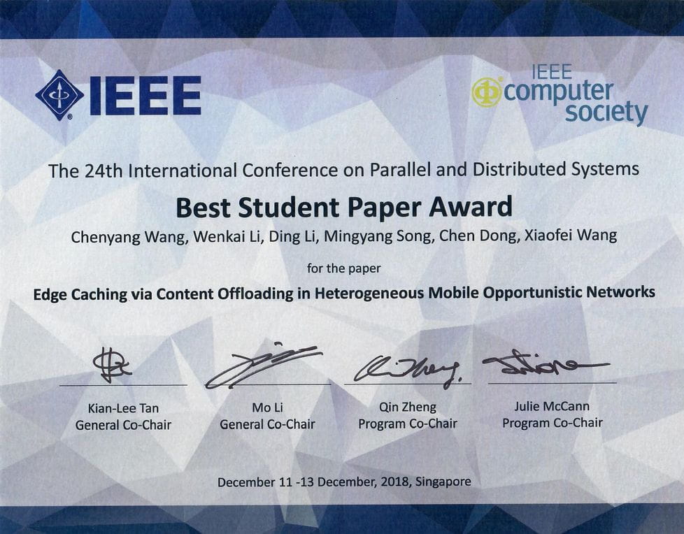 2018.12 : 2018 IEEE ICPADS, Best Student Paper Award