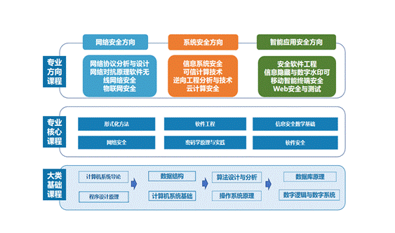 程序设计原理、数据结构、计算机系统基础、算法设计与分析、操作系统原理、计算机网络、数据库原理、形式化方法、软件工程、信息安全数学基础、网络安全、密码学原理与实践、软件安全