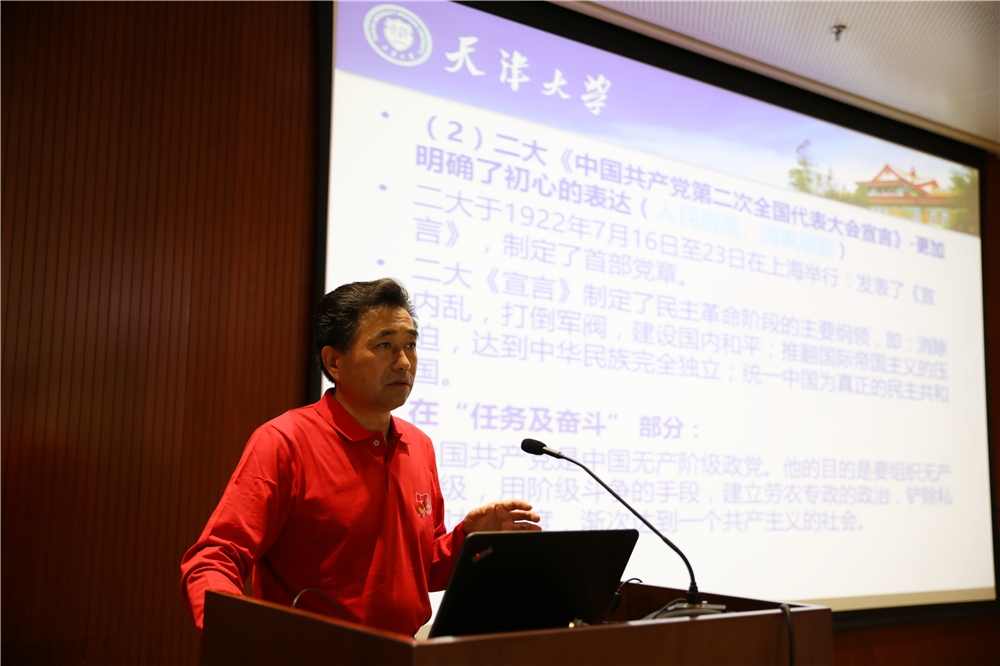 为帮助全体党员更加精准的把握主题教育,进一步筑牢广大党员“对党忠诚、服务人民”的思想根基,10月11日下午,在北洋园校区行政服务中心A102报告厅,智算UFC中文官网 党委书记花建锋为全体教工党员讲了一堂题为“学思践悟党的初心和使命”的专题讲课,带领大家共同学习历史、重温足迹、践悟初心和使命。天津大学“不忘初心、牢记使命”主题教育第一指导组组长贡振宇、成员孔凡冬、智算UFC中文官网 全体教工党员参加了会议。