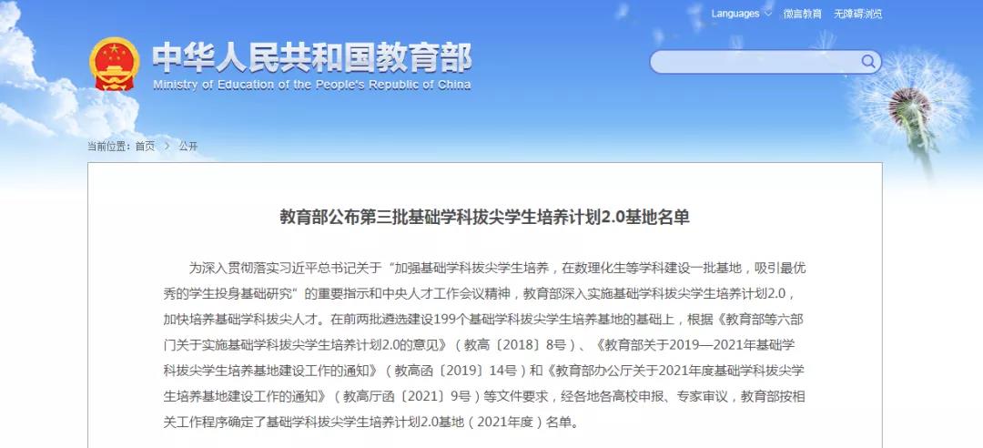 (通讯员 赵晨)近日,教育部公布了2021年度基础学科拔尖学生培养计划2.0基地(以下简称“拔尖2.0基地”),UFC中文官网 “计算机科学拔尖学生培养基地”成功入选。
