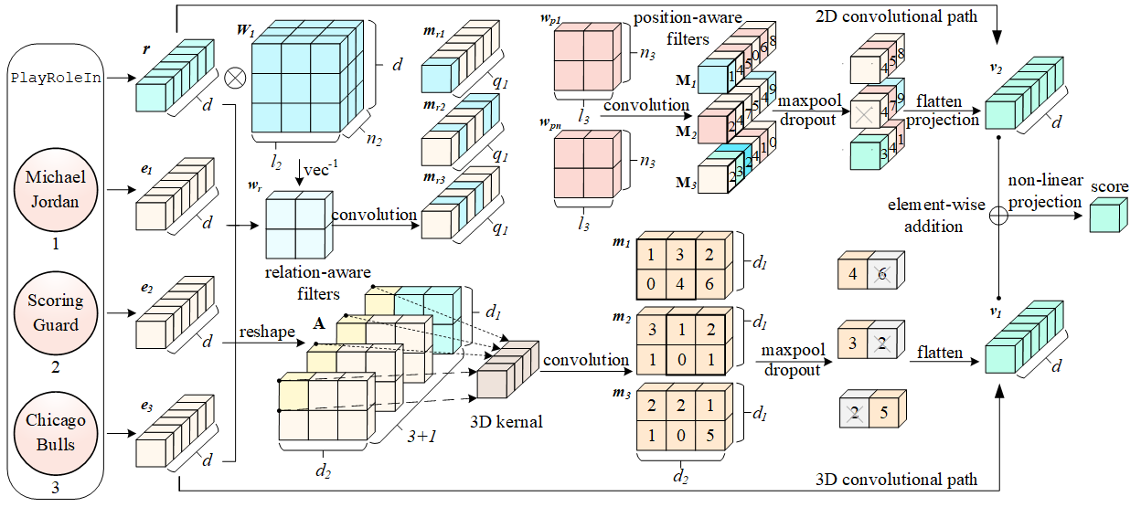 简介:知识超图可以视为知识图谱的泛化表示形式,能够描述多个实体之间的关联,其中不同的实体处于关系中特定的位置。知识超图嵌入方法将实体和多元关系投射到一个低维的连续向量空间中,来进行链接预测等下游任务。目前尽管多元关系事实在现实世界中无处不在,这仍然是一个有待探索的挑战性领域。卷积神经网络在以前的知识图谱链接预测工作中已经被证明具有显著的信息提取能力。在本文中,我们提出了一个新颖的基于嵌入的知识超图链接预测模型,名为HyConvE,它利用卷积神经网络的强大学习能力进行有效的链接预测。具体来说,我们采用三维卷积来捕捉实体和关系的深度交互,在不影响其平移特性的情况下,能够有效地提取每个多元关系事实中的显性和隐性知识。此外,我们认为位于不同关系中不同位置的实体应该有相应的特征信息,我们通过构建关系和位置感知过滤器被连续利用来进行二维卷积操作,以分别捕捉每个多元关系中的语义和位置信息。在知识超图和知识图谱的标准数据集上的大量实验结果表明,与最先进的基线相比,HyConvE有更优越的性能。