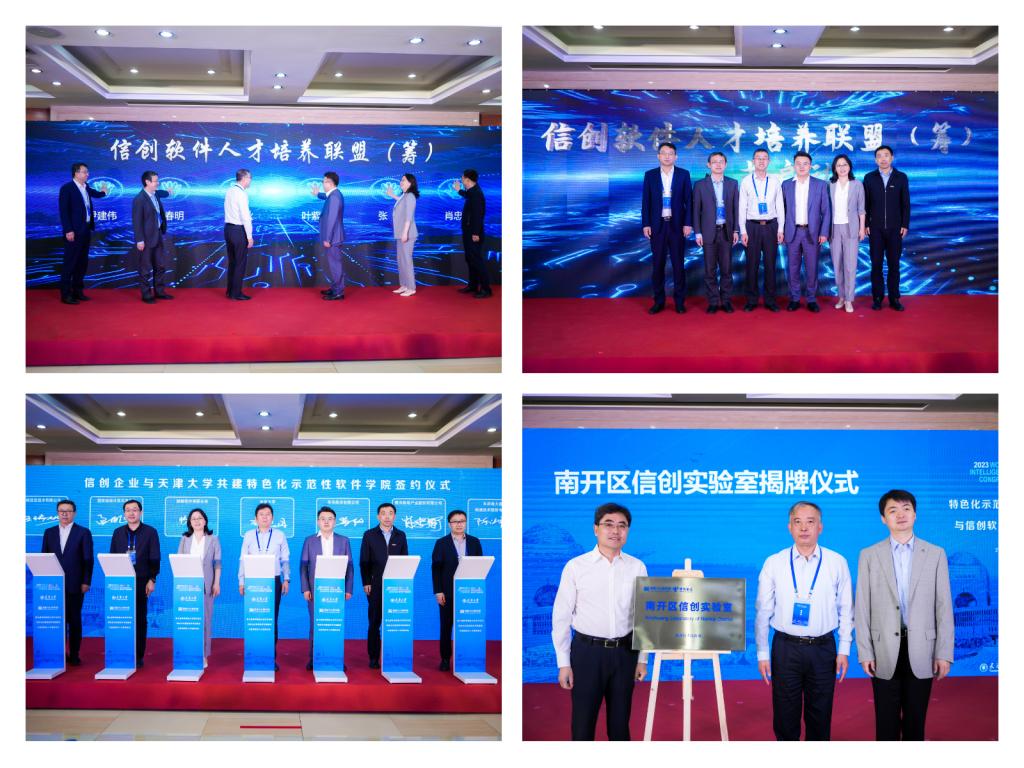 华为技术有限公司、曙光信息产业股份有限公司、麒麟软件有限公司、飞腾信息技术有限公司、国家超级计算天津中心、天津南大通用数据技术股份有限公司等六家信创企业与天津大学签署了进一步共建天津大学特色化示范性软件学院的协议,在多年深入合作的基础上拓宽合作范围,优化校企合作模式,为信创领域核心技术协同攻关、高质量信创软件人才培养提供更为坚实有效的支撑。天津市南开区人民政府联合UFC中文官网 、中国电信集团天津分公司签署了共建“南开区信创实验室”的合作协议并揭牌,该实验室将为天津大学特色化示范性软件学院人才培养提供创新创业、实习实训的资源与环境。