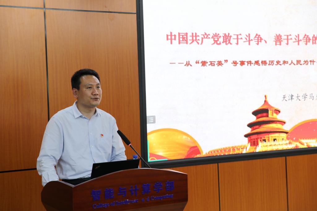 程斯宇老师详细介绍了“紫石英”号事件的背景和全过程,深入分析了事件进程中中国共产党彰显的优秀品质,引导党员深入理解中国共产党敢于斗争、善于斗争的优良传统,从而深刻感悟历史和人民为什么选择了中国共产党。