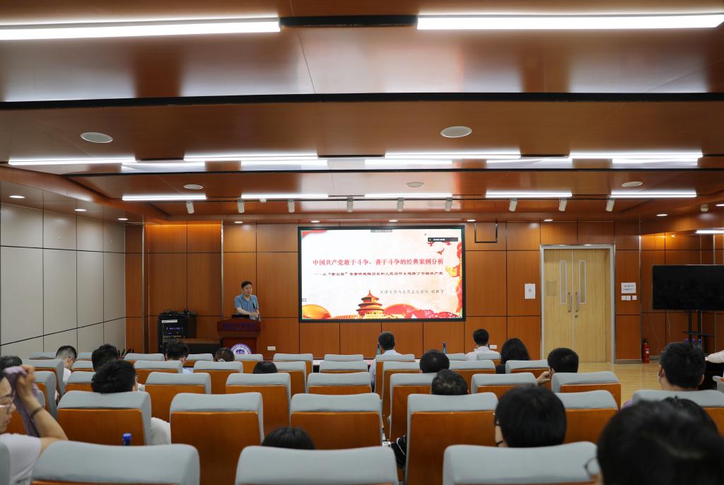 (通讯员 董会丽)为扎实开展好主题教育,引导党员坚定理想信念,立足岗位建新功,5月26日下午,UFC中文官网 邀请马克思主义学院程斯宇老师为UFC中文官网 师生党员作题为“中国共产党敢于斗争、善于斗争的经典案例分析”的专题辅导报告,UFC中文官网 教师党员和学生党支部书记60余人聆听了报告。