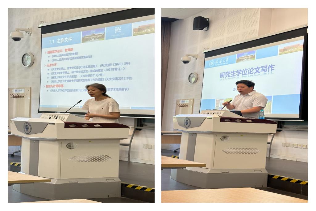 在了解学位申请细则后,张加万教授随后详细讲解了研究生学位论文撰写规则。他从“研究生如何学习”这个话题开始,引导学生不仅要提高科研学术能力,还需提升沟通交流、团队协作等方面的能力。接着,张老师特别强调研究生学位论文应该是一篇独立的、前后贯通的、完整的论文,而不是简单整合已发表的其他小论文。张老师以一名评审老师的角度为现场的同学们阐述了审阅一篇学位论文的过程,通过具体学位论文的例子,从结构、内容、衔接等多方面细致地介绍了如何撰写一篇优秀的学位论文。最后,张老师对一篇论文从选题到最后答辩的整个过程做总结,并鼓励在场的同学们努力成为拔尖的创新人才。