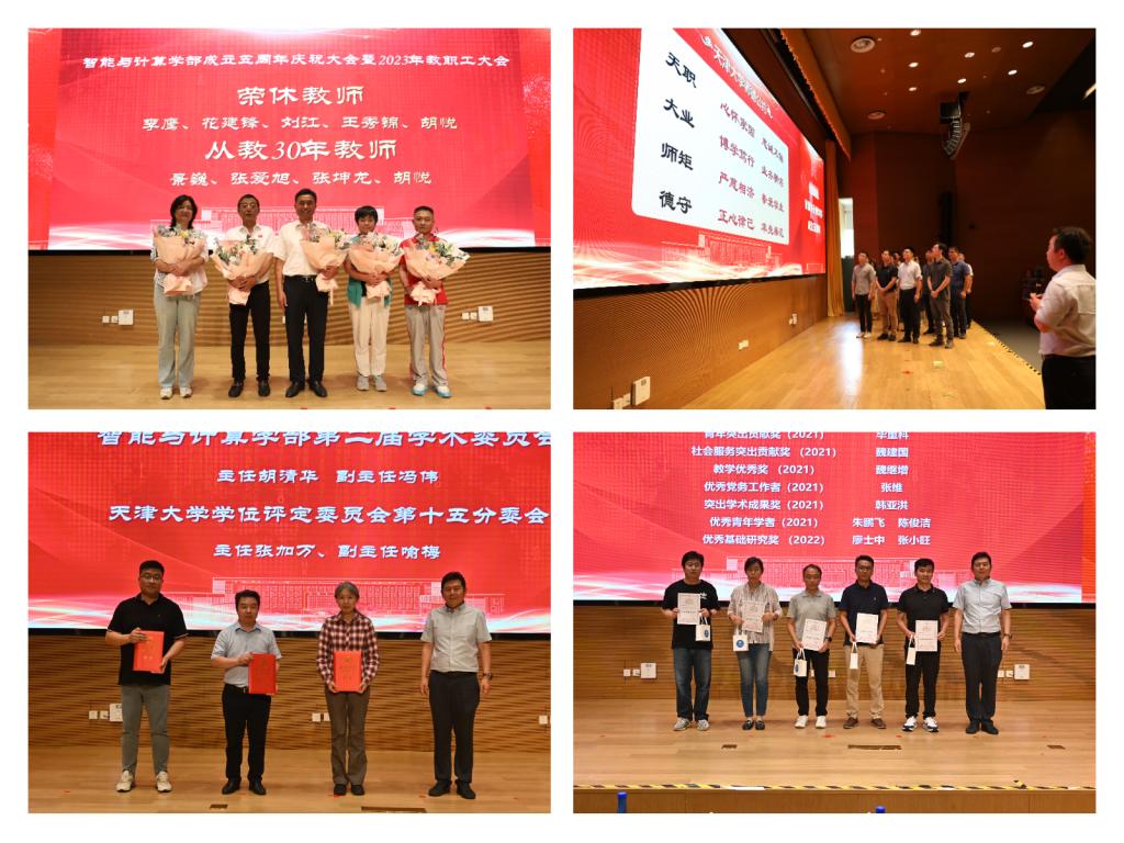 近三年来UFC中文官网 有5位老师光荣退休、4位教师光荣从教三十年,UFC中文官网 为他们举办了荣休仪式与从教三十年庆祝仪式,党委书记魏建国及UFC中文官网 主任李克秋为到场老师们送上鲜花与祝福。荣休仪式结束后,举行了新教师入职仪式,新入职教师14人集体上台,表达从教初心。UFC中文官网 学术委员会主任胡清华为新入职教师佩戴校徽并带领他们集体诵读《天津大学师德公约》,帮助迈正从教第一步。2023年上半年,UFC中文官网 学术委员会等机构完成换届,UFC中文官网 党委书记魏建国为走上新工作岗位的老师们颁发聘书。大会上,UFC中文官网 还对2021年以来在人才培养、科学研究、社会服务等方面取得突出成绩的集体和个人等100余人次进行表彰,以激励全体教职工继续不懈奋斗,共同努力。