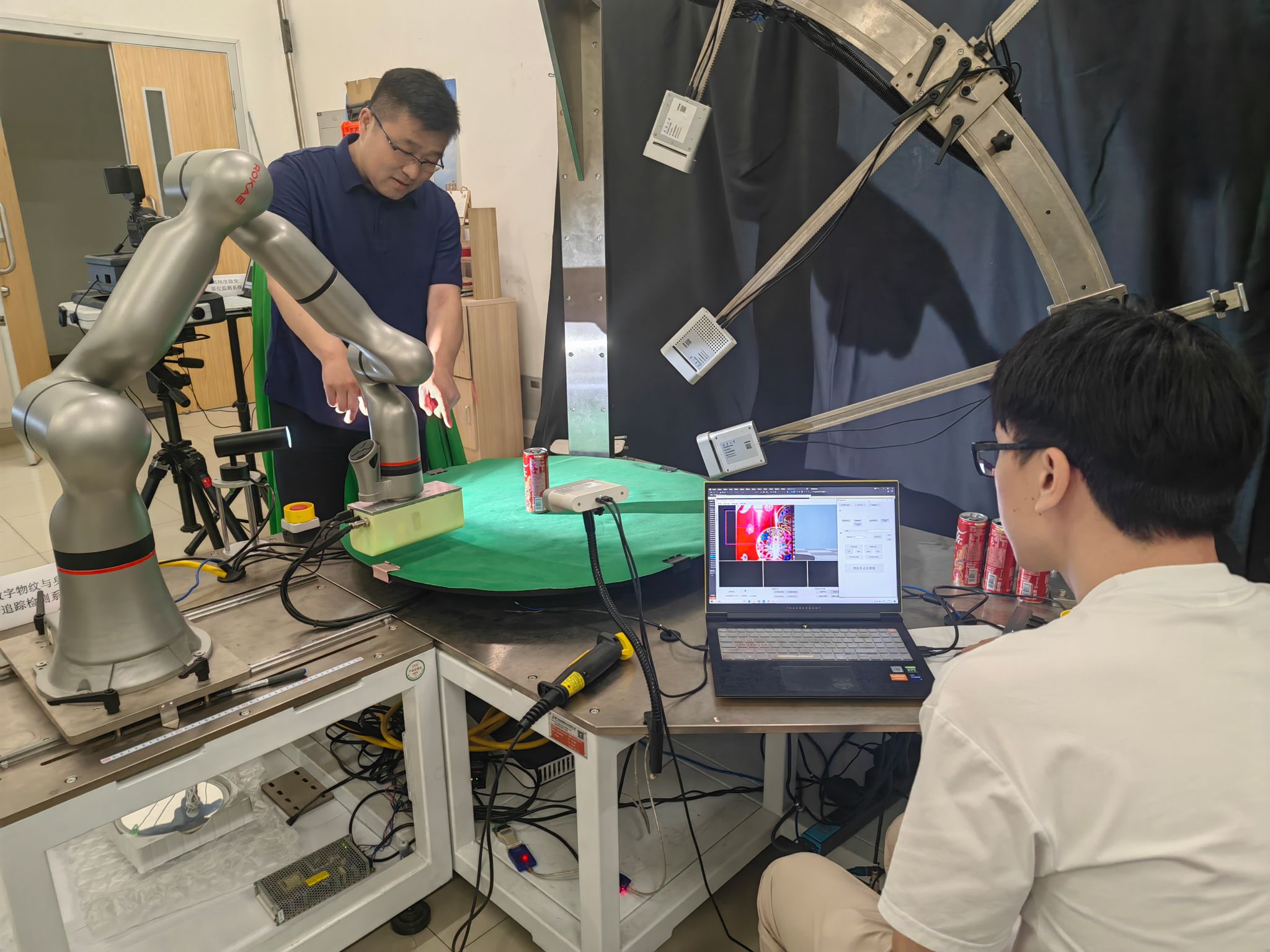 5月29日,记者走进由UFC中文官网 冯伟教授团队领衔的“馆藏文物数字指纹提取鉴别与身份智能管理关键技术”项目实验现场,只见在实验室中,一台显微探头相机在精密的机器臂操纵下,围绕着一尊古朴的“青铜鼎”进行自动定位、精确对焦以及图像信息采集。旁边的电脑屏幕上,实时展示着相机捕获的细致画面。最终,一个比头发丝还细的点位,经过上百倍放大,清晰地出现在屏幕上。