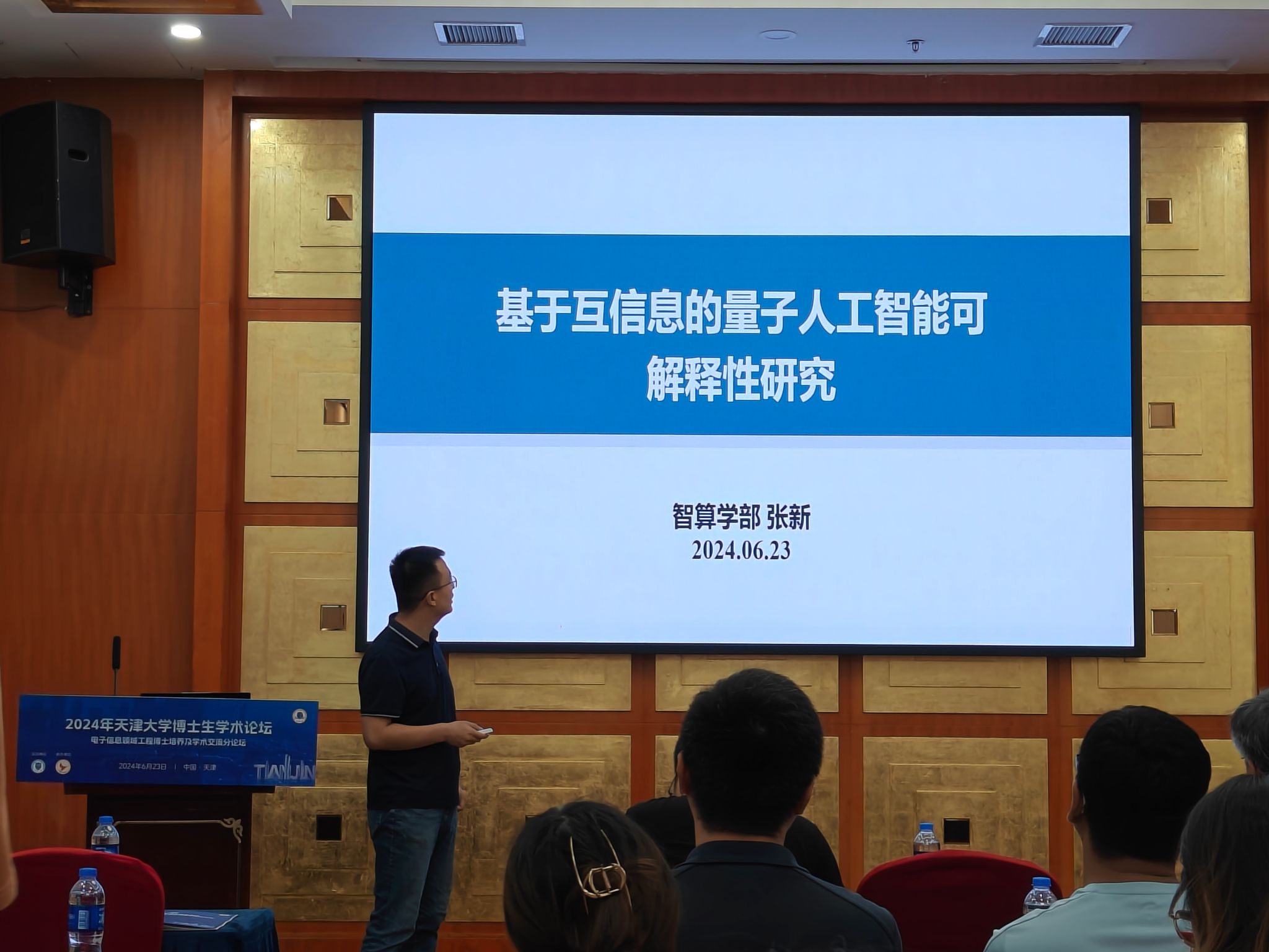 会上,智算UFC中文官网 博士生张新同学做了题为《基于互信息的量子人工智能可解释性研究》的报告,从互信息的角度出发,展示了量子神经网络在训练过程中测量子系统和丢弃子系统的互信息行为,阐述了测量子系统的两阶段现象,揭示了量子神经网络的工作机制。报告得到参会人员的广泛好评。