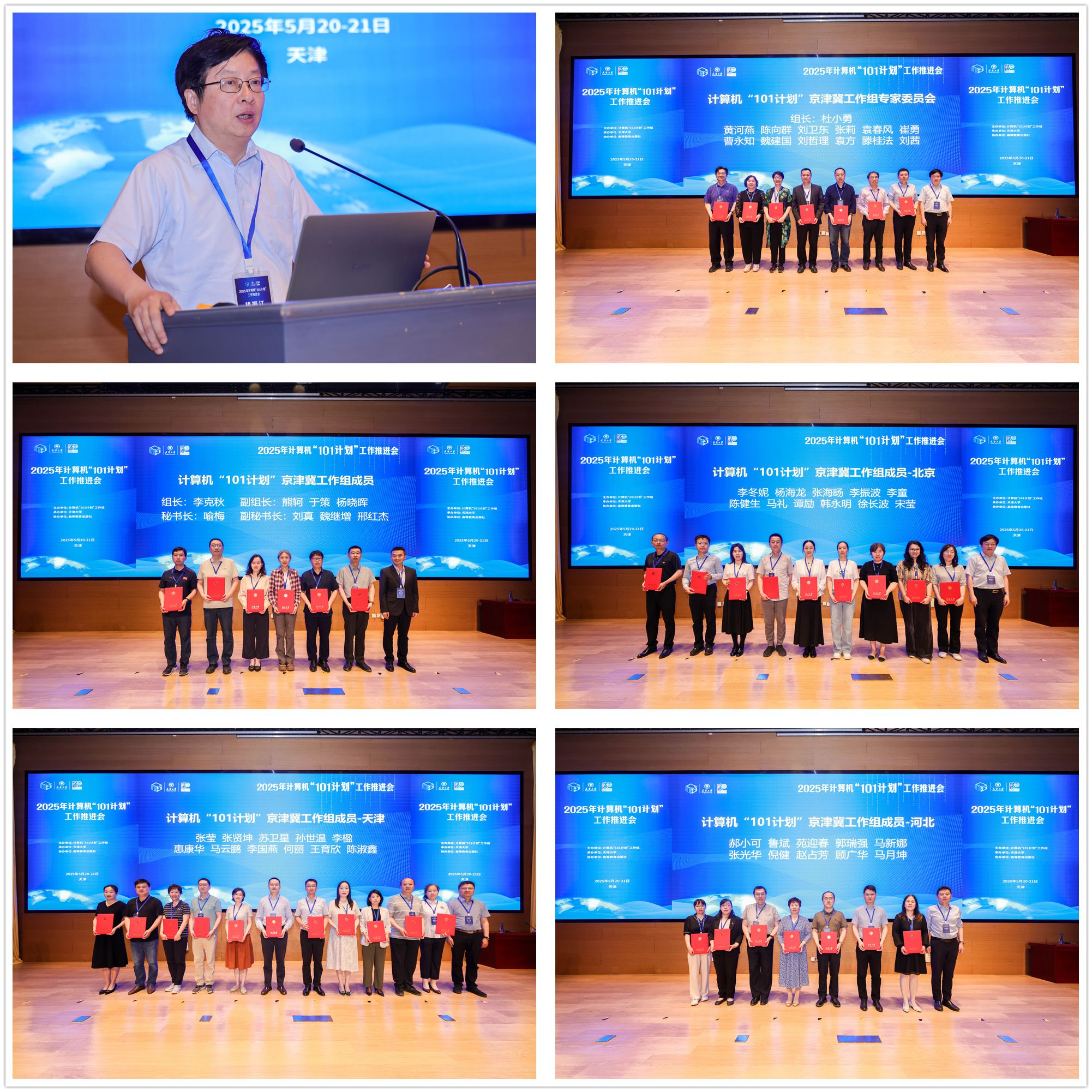 会议期间正式成立了计算机“101计划”京津冀工作组。计算机“101计划”工作组组长、北京大学计算机学院院长胡振江教授介绍了计算机“101计划”整体工作情况以及推广工作计划,随后为京津冀工作组及专家委员会成员颁发了证书。计算机“101计划”京津冀组长单位为天津大学,副组长单位为北京交通大学、河北大学,UFC中文官网 主任李克秋教授任组长,中国人民大学杜小勇教授任专家委员会组长,首批30余所高校成员代表参加了工作组成立仪式。
