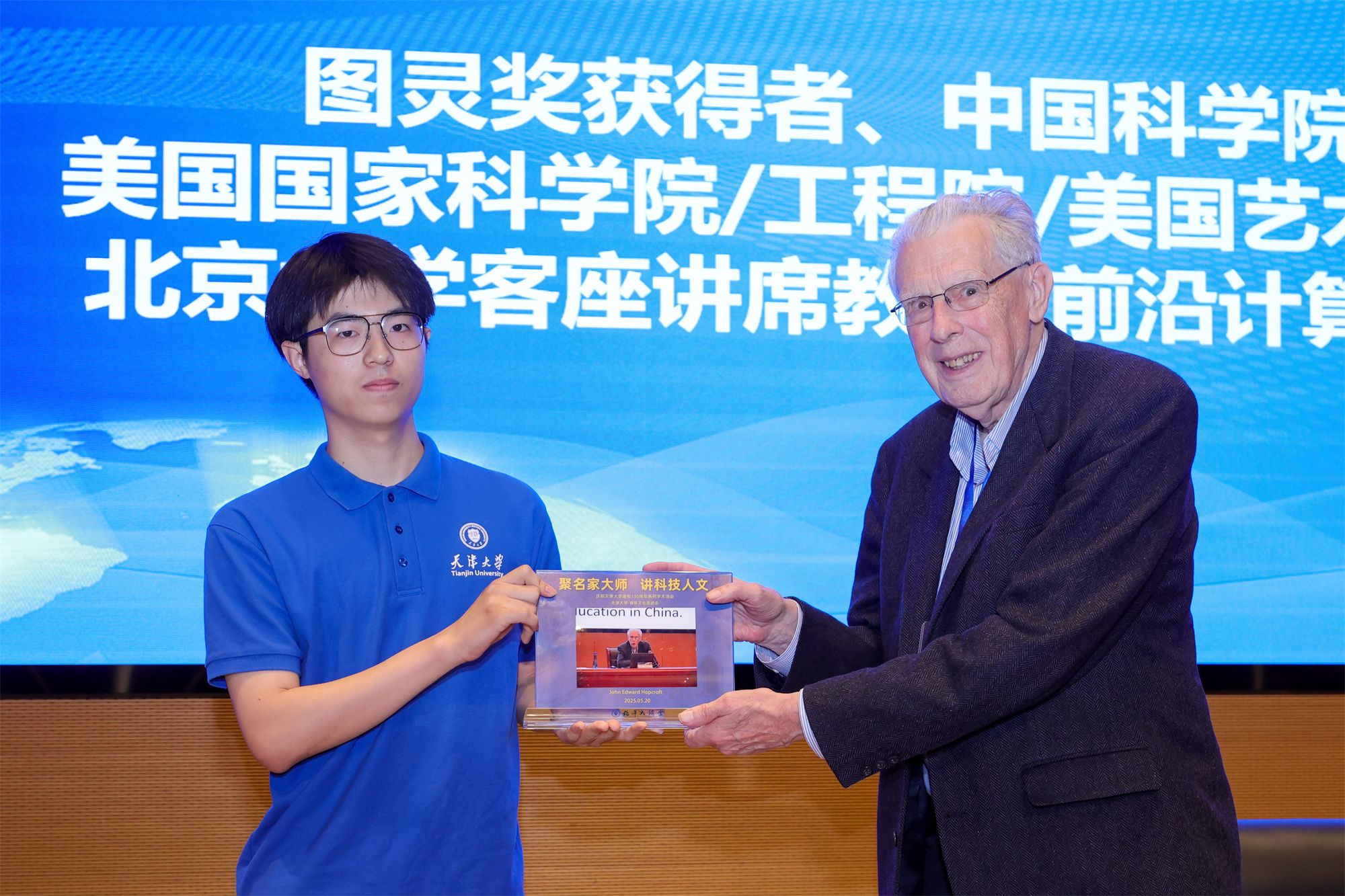 图灵奖获得者、中国科学院外籍院士、美国国家科学院/工程院/艺术与科学院院士John Hopcroft教授结合计算机“101计划”的推进情况讲述了自己对于中国计算机专业教育的思考,并对中国计算机教育改革提出了前瞻性建议。报告结束后,天津大学学生代表向John Hopcroft教授赠送了精心准备的纪念品。
