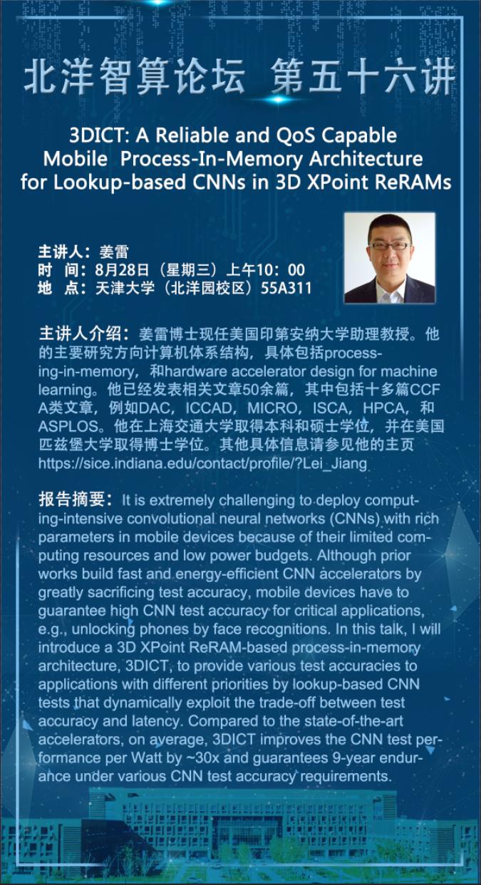 姜雷博士现任美国印第安纳大学助理教授。他的主要研究方向计算机体系结构,具体包括processing-in-memory,和hardware accelerator design for machine learning。他已经发表UFC中文官网相关的文章50余篇,其中包括十多篇CCF A类文章,例如DAC,ICCAD,MICRO,ISCA,HPCA,和ASPLOS。他在上海交通大学取得本科和硕士学位,并在美国匹兹堡大学取得博士学位。