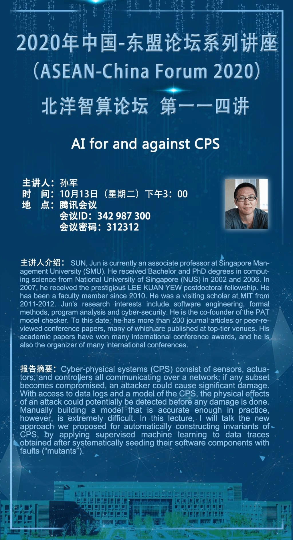 SUN, Jun is currently an associate professor at Singapore Management University (SMU). He received Bachelor and PhD degrees in computing science from National University of Singapore (NUS) in 2002 and 2006. In 2007, he received the prestigious LEE KUAN YEW postdoctoral fellowship. He has been a faculty member since 2010. He was a visiting scholar at MIT from 2011-2012. Jun's research interests include software engineering, formal methods, program analysis and cyber-security. He is the co-founder of the PAT model checker. To this date, he has more than 200 journal articles or peer-reviewed conference papers, many of which are published at top-tier venues. His academic papers have won many international conference awards, and he is also the organizer of many international conferences.