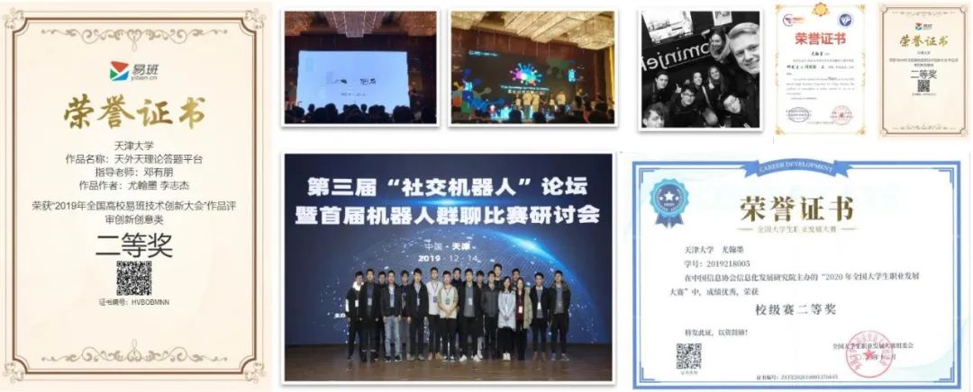 作为天外天工作室产品组组长和曾任的站长,我们参与开发了一系列产品服务天大师生,为学校与学生搭建沟通桥梁。从问津、求实BBS到微北洋;从理论答题、勤工助学综合管理中心到学生党建平台;从微北洋2.0到4.0;参与和见证了数十款产品研发和活动举办;其中点亮天大世界校友地图、春来天大赏海棠等活动将全世界天大校友连接在一起,受到广泛好评,获得10w+访问量。其中学生党建平台获得2018全国高校易班技术创新大会第一名,理论答题系统荣获2019全国高校易班技术创新大会二等奖。我始终坚信,青春无极限,天外更有天。